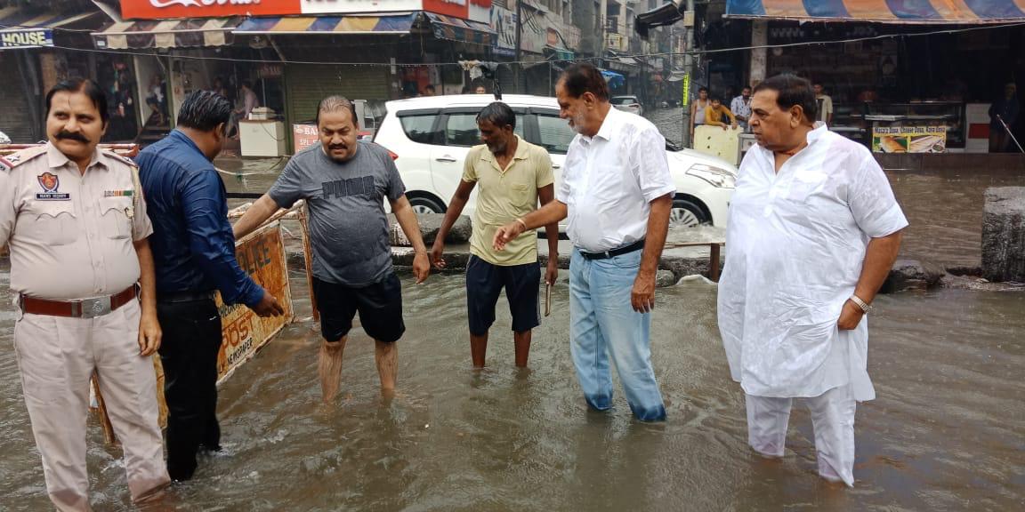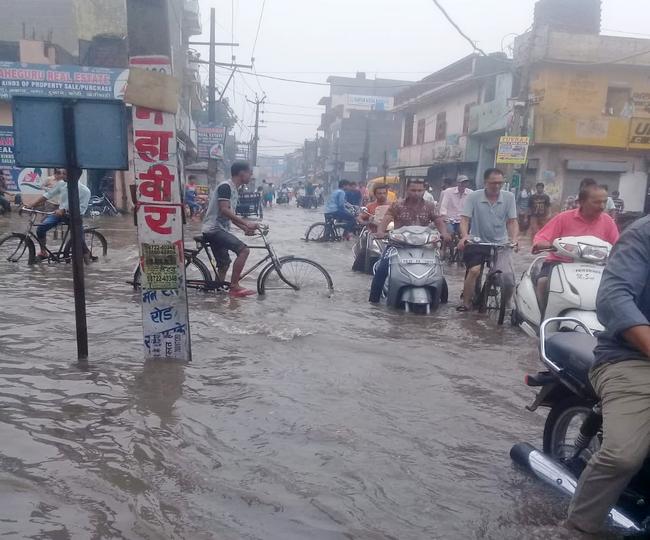 ਹਰਜੋਤ ਸਿੰਘ ਅਰੋੜਾ, ਲੁਧਿਆਣਾ : ਅੱਜ ਸਵੇਰੇ ਅੱਠ ਵਜੇ ਤੋਂ ਸ਼ੁਰੂ ਹੋਏ ਮੀਂਹ ਨੇ ਸਾਰੇ ਲੁਧਿਆਣੇ ਨੂੰ ਜਲਮਗਨ ਕਰ ਦਿੱਤਾ। ਕਰੀਬ ਤਿੰਨ ਘੰਟੇ ਲਗਾਤਾਰ ਪਏ ਭਾਰੀ ਮੀਂਹ ਦੇ ਕਾਰਨ ਸ਼ਹਿਰ ਦੇ ਮੁੱਖ ਬਾਜ਼ਾਰਾਂ ਚੌੜਾ, ਬਜ਼ਾਰ ਮੀਨਾ ਬਜ਼ਾਰ, ਪ੍ਰਤਾਪ ਚੌਕ, ਹੈਬੋਵਾਲ, ਸ਼ਿਮਲਾਪੁਰੀ, ਘੁਮਾਰ ਮੰਡੀ ਆਦਿ ਇਲਾਕਿਆਂ 'ਚ ਕਰੀਬ ਇੱਕ ਤੋਂ ਤਿੰਨ ਫੁੱਟ ਤਕ ਪਾਣੀ ਭਰ ਗਿਆ, ਜਿਸ ਕਾਰਨ ਸਾਰੇ ਸ਼ਹਿਰ ਦੇ 'ਚ ਟ੍ਰੈਫਿਕ ਵਿਵਸਥਾ ਠੱਪ ਹੋ ਗਈ।